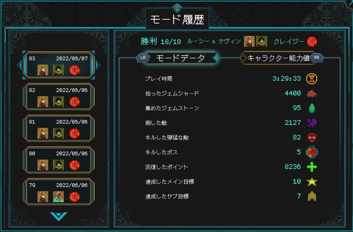 1プレイ3時間半かかって、83回(合計プレイ時間95時間)でようやくクリアしました。