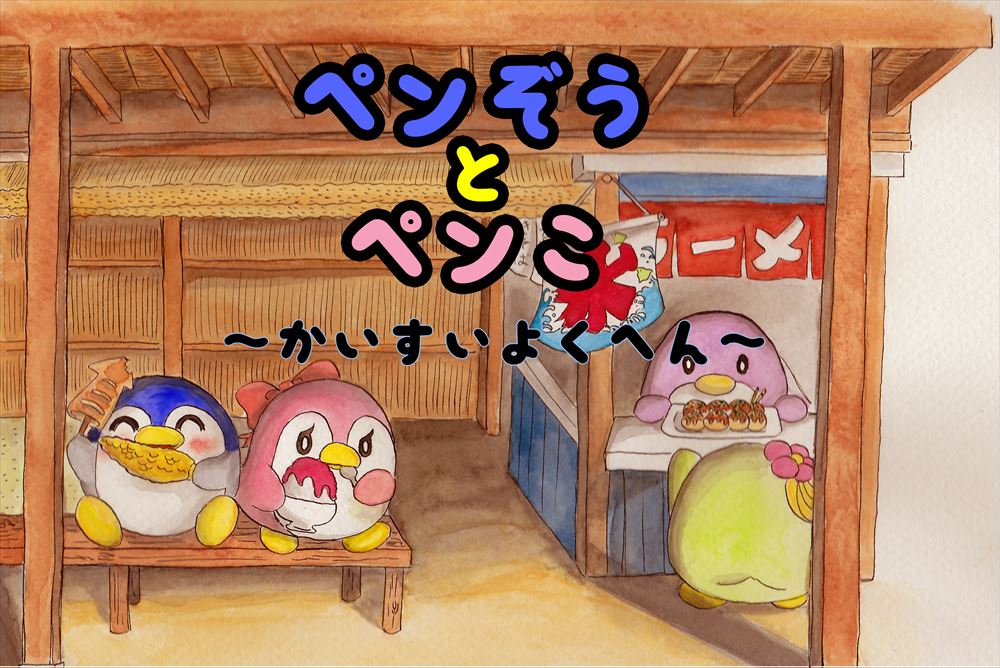 今回は、ペンぞうとペンこ、ペンみ(ペンこの妹)の三人で海水浴にでかけます。